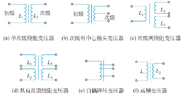 ① 單次級(jí)變壓器 如果L2圈數(shù)小于L1,可作降壓變壓器。如果L2圈數(shù)大于L1可以作升壓變壓器,一般可用在電源降升壓電路。由于采用鐵芯,所以可用在低頻電路中,鐵芯對(duì)磁力線阻力大,產(chǎn)生渦流電流消耗。如果作降壓器次級(jí)線圈可以作單支二極管單波整流,同時(shí)也可以用四支二極管作全橋整流。